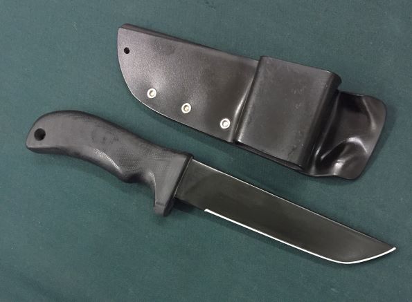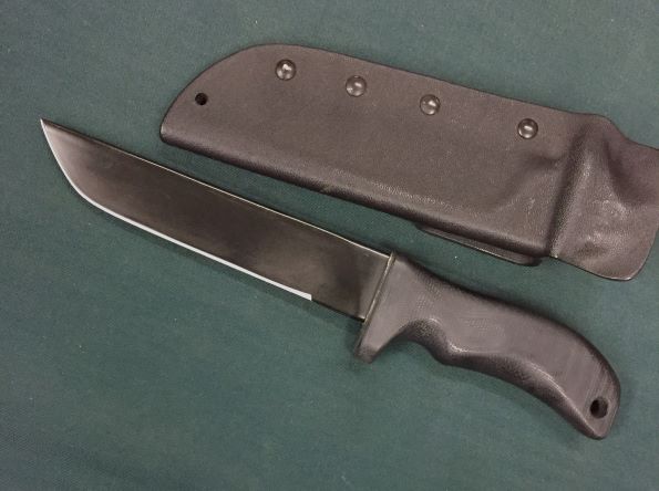 | Mad Dog Knives Kodiak↓↓ (Kodiak Bear = 灰色熊 = アラスカのグリズリー ) 10 inch の大型、 少々擦れ跡あり。 Sold 2015/3税込 ¥260000 $2160 ( $50 Shipping ) (Will trade or partial trade with your collection ..) 刃長約25.5cm 全長約38.5cm プレーン刃 刃長約25.4cm 全長約38.5cm Kodiac ↑エッチングロゴ 傷もよう ↓↓ ↓Scratch by Kydex Sheath 写真のナイフの輪郭の歪みは写真の縮小で生じたものです。 ナイフではありません。 |