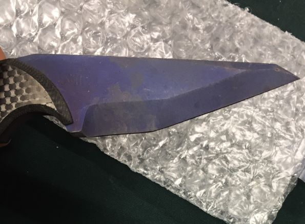 大好きな刀 を 自分独自の チタン-カーボン アートで 表現。 これで 重さ 660g 程度