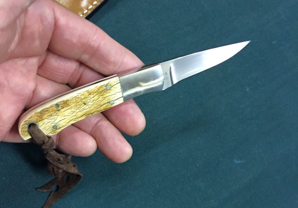 | 小泉茂樹 カスタムナイフ マストドン マンモスアイボリ 鋼材:ATS-34 刃長約:5.5cm 全長約:13.6cm 刃厚約:3mm 未使用な美品 税込 シースにベルトループがありません↓↓ 買取品 |