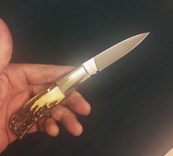 ![]() r無名 (Whose?)Baby HORN... 極上スタッグ 鋼材:?ステンレス 刃長約:7.4cm 全長約:16.6cm 刃厚約:3mmSold 税込¥44000 G. Sakai の Horn Special に似てるかな? ベベルストップのラインが前方に傾斜しているところが似ています。他のメーカやカスタム作家はあまり傾斜していません。 ’有名’作家さんに負けない気がします。なんでそんなにカッコいいんだろう、といろいろ眺めて観察すると... 1つは、ベベルストップが斜めに前向きになっているところ? ここがかっこよく見せているのかなぁ? 実際のホーンモデルはあまり傾斜していない。少しだけ。 傾斜でなければ、スタッグかな。景色のいい極上スタッグ!この要素は大きい。 気に入ったせいか、曇りや汚れがあったので 1時間くらい磨きました...見飽きません。 ジェス・ホーンを買った気分になれますよ〜ォ なんちゃってぇ... 声: tenchoの妄想ですよ! ..ホントになんちゃってぇ、だぜ。 ![]() 買取品 |
