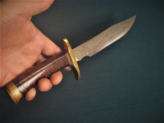 | Wire Damascus Fighter 6インチ ワイヤーダマスカス ハマグリ刃 AG ラッセルから仕入れ。16歳の少年が作った1本 だそうです。1994ごろ まだナイフつくっているかな~? 刃長約:17cm 全長約:27.5cm 刃厚約:3.5mm Made by a 16 year old boy in about 1994 or earlier. 税込¥33000 これは仕入れ原価くらいだなぁ。Sold |