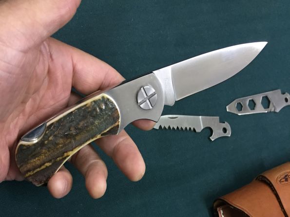![]() ![]() I.C.CUT エクスチェンジブレードフォルダースタッグ鋼材:多分6Aステンレス 刃長約:7.3cm 全長約:17.7cm 刃厚約:3mm 税込¥6000 Sold |