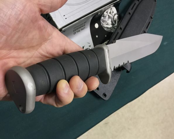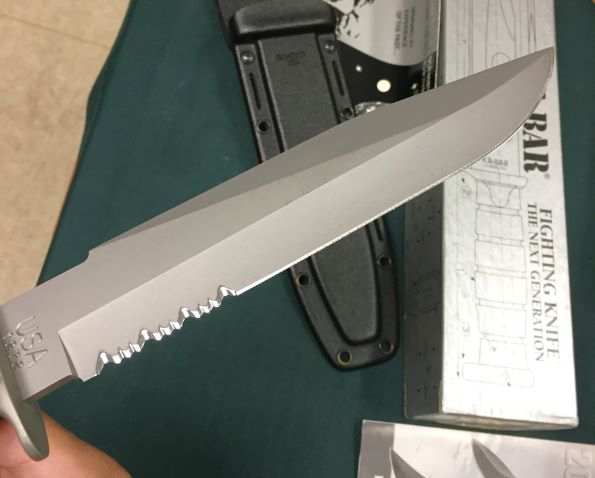 | KA-BAR #02-1272 Fighting 鋼材:440A 刃長約:20.2cm 全長約:33cm 刃厚約:mm 擦れなどの傷あり、エッジはシャープで未使用な中古 税込¥17000 Sold シースの擦れ跡↓↓ |