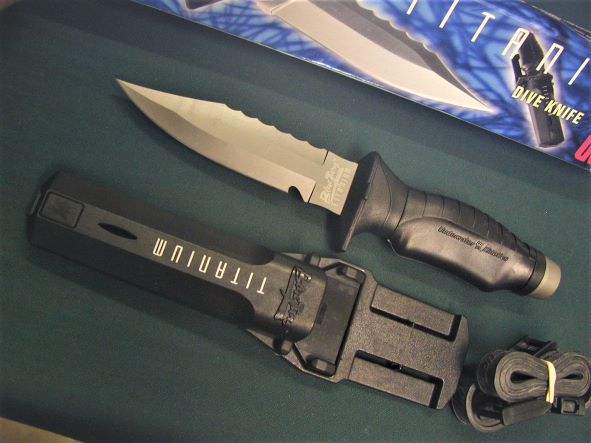| UWater Kinetics チタン ダイビングナイフ 未使用な中古美品 税込¥7000 刃長約:12.1cm 全長約:25.6cm 刃厚約:3.5mm Sold 買取品 |