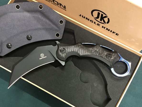| Defcon Jungle Knife Karambit 鋼材:D2 刃長約:9.8cm 全長約:21.2cm 刃厚約:7mm Mint コンディション 税込¥18000Sold 買取品 |