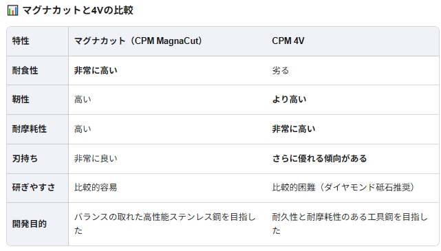 -From Noblie4VはMagnacutより刃持ちの良さとタフネスでは上みたいですが、耐蝕性で劣る。 |