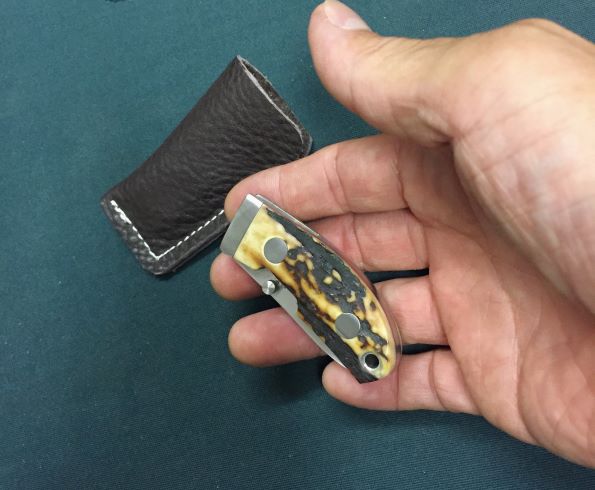 | Kansei Matsuno 豆フォルダー Model T22 Stag 鋼材:ATS-34 刃長約:4.1cm 全長約:10cm 刃厚約:3mm弱 税込¥58000 |