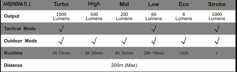 ![]() PD35 V2.0‐Digicamo Max 1000ルーメン 18650 1本 または CR123 2個 使用 ¥8800 税込 Sold out ・サイズ:2.3〜2.54cm直径 x 13.8cm長さ ・重さ: 88g ・防水性能: IP68 土砂降り OK 潜水不可 ・米国 Cree社製 高性能 XP-L HI (V3) LED 使用 ・ 光量: ↓ ![]() 注意:室内で3500mAhの18650を使ったテスト結果です。電池の種類、ブランド、テスト環境の 違いで 数値は変わってきます。 |