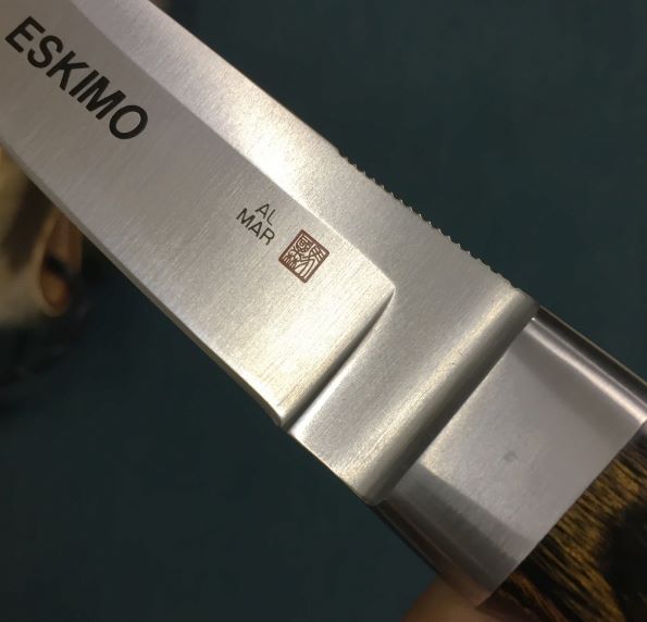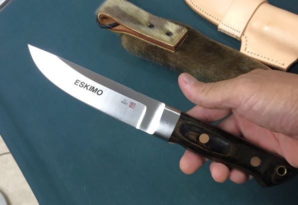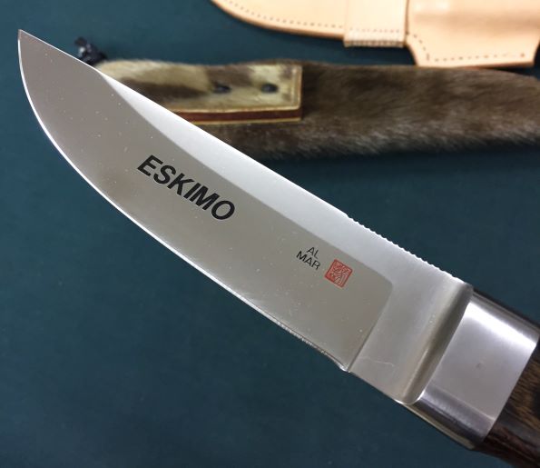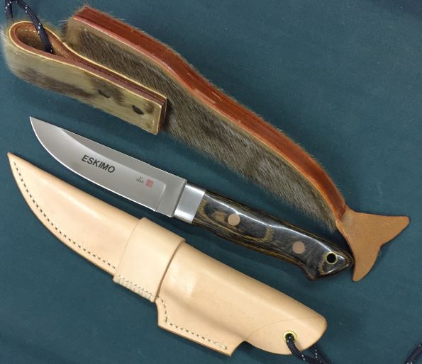 | Al Mar Eskimo Knife エスキモーナイフ 初期のオリジナルエスキモーナイフ 税込¥65000 アザラシの毛皮のシースがオリジナルシース。 アザラシシースを使いたくなかったため、別にカスタムシースを作りました。大変綺麗なシースです。 Mint コンディション。 The original sheath is the one with sealskin. The white sheath is custom made for the Eskimo knife. All in unused Mint condition. $440 買取品 |