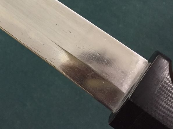 はばき風リカッソがたまらん! 田辺作品、最高の一品。 今となっては初期の田辺作品 Sold 全長:約27.5cm 刃長:約15cm |