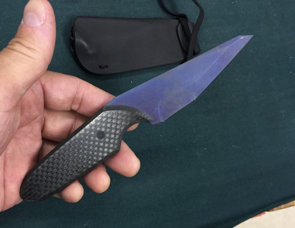 大好きな刀 を 自分独自の チタン-カーボン アートで 表現。 これで 重さ 660g 程度