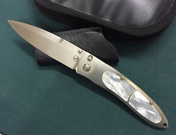 | ウイリアム ヘンリー Matt Lock Pearl パール 両面綺麗なパール貝 砥ぎ跡有り 受託販売品 税込¥55000 クリップシース付き、ポーチ付き |