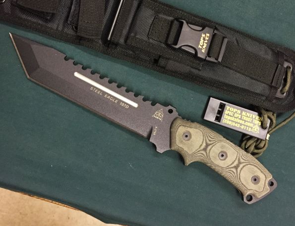 TOPS Steel Eagle 107D スチールイーグル 鋼材:1095炭素鋼 刃長約:19.1cm 全長約:32.5cm 刃厚約:6.4mm Mint コンディション 税込¥26000 買取品 |