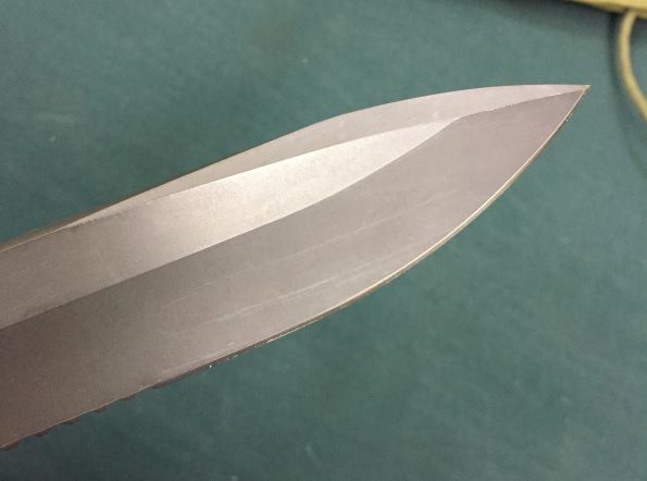 これはなんというモデルでしょうか... 刃長約18cm(7”)、全長約30.3cm(12”) Project II セレーションなし スペシャルモデル とでも言うのでしょうか。 シリアル入り、 プレミアムシース ミントです。 Sold 五萬八千円 |