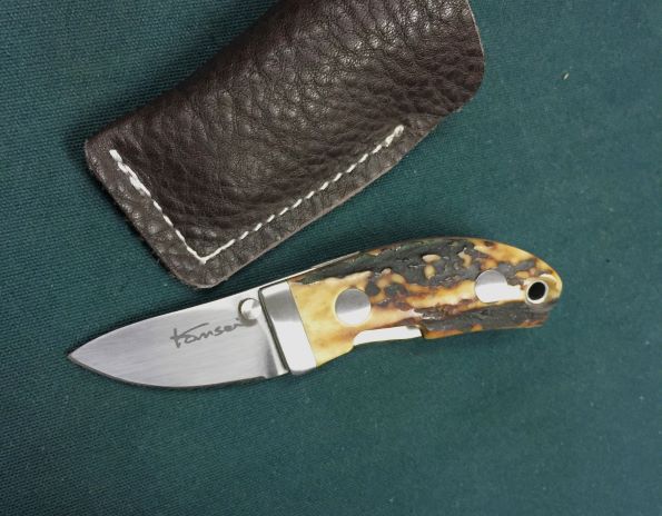 Kansei Matsuno 豆フォルダー Model T22 Stag 鋼材:ATS-34 刃長約:4.1cm 全長約:10cm 刃厚約:3mm弱 税込¥58000 |